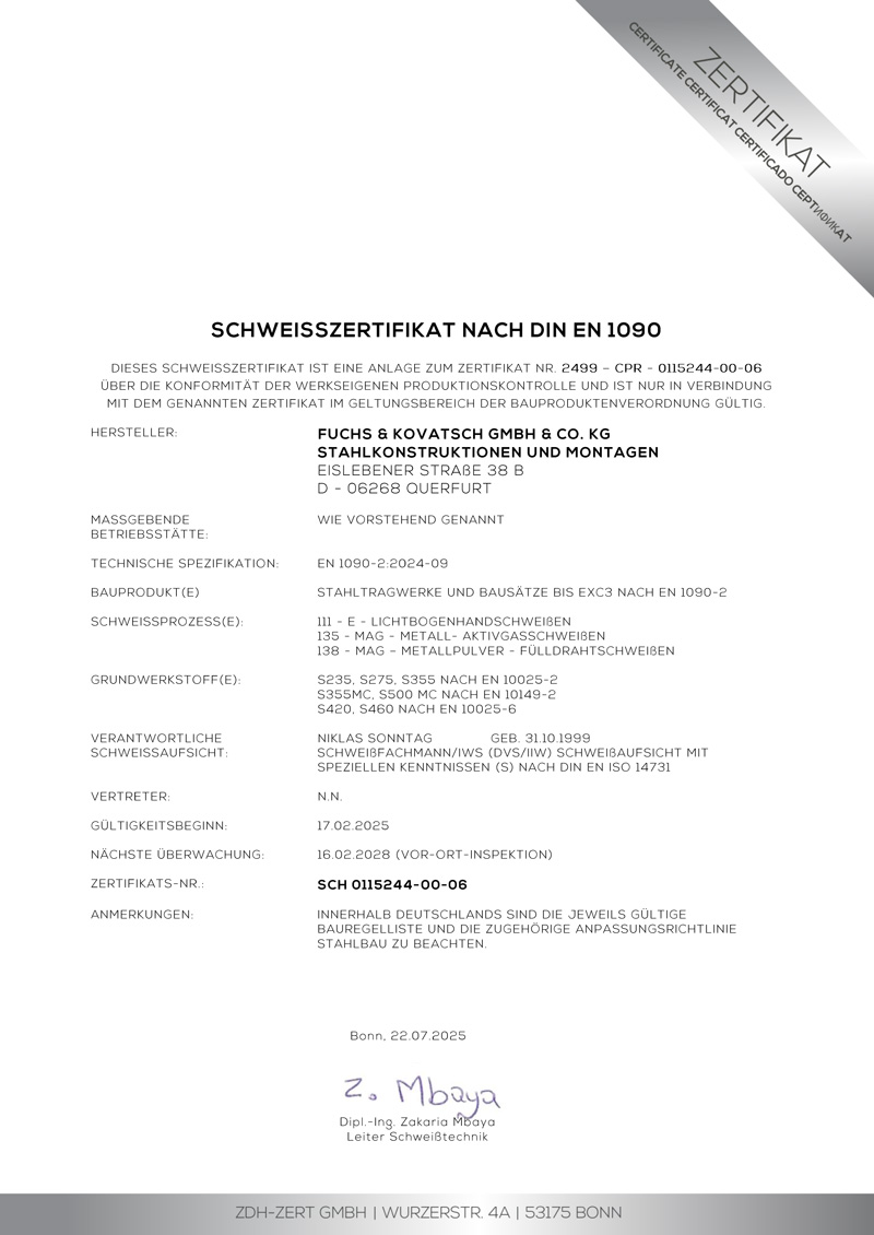 Schweißzertifikat